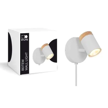 D'Lite Wandleuchte Beitem Metall Matt Weiß FSC Holz | Geeignet Für 1x GU10