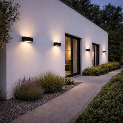 Beleuchtung mit Sensor schaltet sich nur ein, wenn ein bestimmtes Signal empfangen wird. Dies senkt die Energiekosten. Die (integrierten) Sensoren reagieren auf Dunkelheit (Dämmerungsschalter) und/oder Bewegung (Bewegungsmelder).