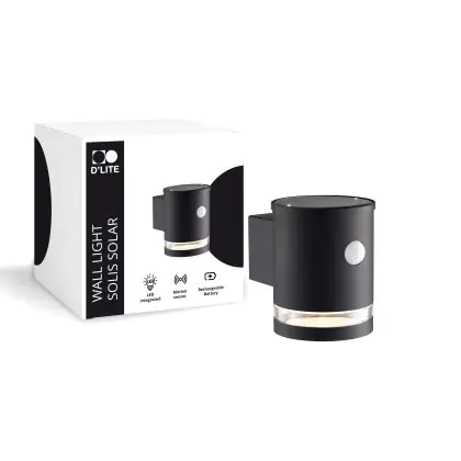 D'Lite Wandleuchte Solis Solar Schwarz Up & Down - 830 Warmweiß | IP54 - Bewegungssensor