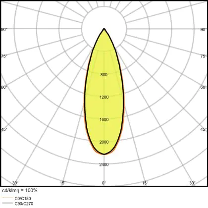 Der Abstrahlwinkel bezeichnet den Winkel, in dem das Licht aus der Lichtquelle ausgestrahlt wird. Er wird in Grad (D) angegeben. Je geringer die Gradzahl des Abstrahlwinkels ist, desto kleiner ist auch der Durchmesser des Lichtkegels, den die Lichtquelle produziert. Beispiel: Wird eine Lampe mit einem Abstrahlwinkel von 60 Grad an der Decke (2,5 m Höhe) angebracht, erzeugt sie einen Lichtkegel von 2,9 Metern Durchmesser. Hat die Lampe hingegen einen Abstrahlwinkel von 120 Grad, beträgt der Lichtkegel 8,7 Meter im Durchmesser. |