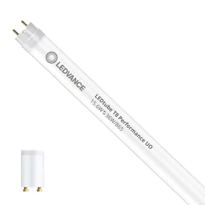 Bei der Ledvance LED Röhre T8 Performance (EM/Mains) Ultra Output 15.6W 2500lm - 865 Tageslichtweiß | 120cm - Ersatz für 36W handelt es sich um eine energieeffiziente LED-Röhre. Sie ersetzt Ihre konventionelle Leuchtstoffröhre mit 36W. Die Röhre ist 1212 mm lang und hat die Farbtemperatur 6500K - Tageslichtweiss. Die durchschnittliche Lebensdauer der LED-Röhre beläuft sich auf 60000 Stunden. Wir bieten Ihnen für dieses Produkt eine Garantie von 5 Jahre an.