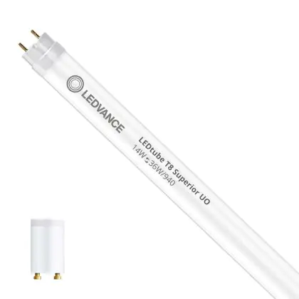 Bei der Ledvance LED Röhre T8 Superior (EM/Mains) Ultra Output 14W 2600lm - 940 Kaltweiß | 120cm - Best Color Rendering - Ersatz für 36W handelt es sich um eine energieeffiziente LED-Röhre. Sie ersetzt Ihre konventionelle Leuchtstoffröhre mit 36W. Die Röhre ist 1212 mm lang und hat die Farbtemperatur 4000K - Kaltweiss. Die durchschnittliche Lebensdauer der LED-Röhre beläuft sich auf 75000 Stunden. Wir bieten Ihnen für dieses Produkt eine Garantie von 5 Jahre an.