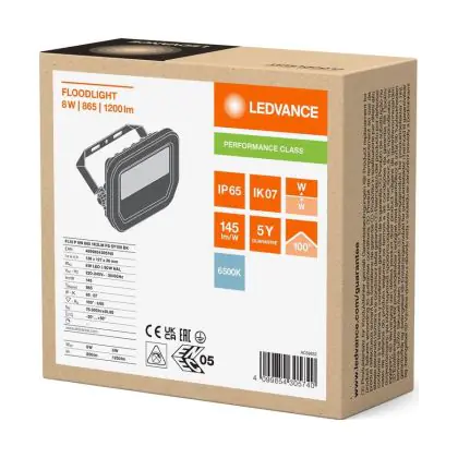 Ledvance Led-Scheinwerfer Aluminium Schwarz 8W 1200lm 100D - 865 Tageslichtweiß | IP66 - Symmetrisch