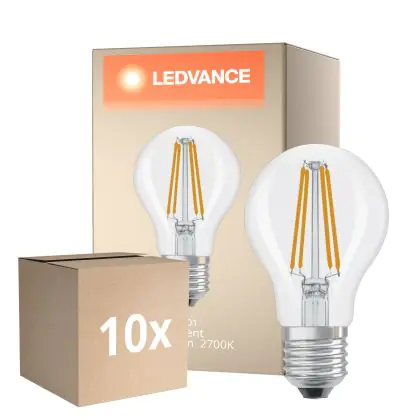 Mehrfachpackung 10x Ledvance Classic LED E27 Birne Fadenlampe Klar 5.9W 806lm - 827 Extra Warmweiß | Dimmbar - Ersatz Für 60W