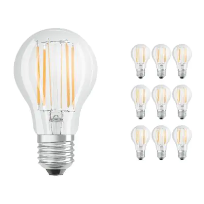 Mehrfachpackung 10x Osram CLASSIC LED E27 Birne Fadenlampe Klar 7.5W 1055lm - 827 Extra Warmweiß | Dimmbar - Ersatz Für 75W