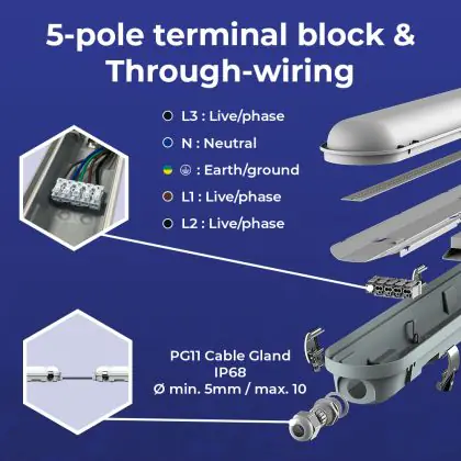 Mehrfachpackung 12x Noxion LED Feuchtraumleuchte Poseidon V3.0 18-30W 2340-4200lm - 830-865 CCT | 120cm - Durchgangsverdrahtung (5x2.5mm2)