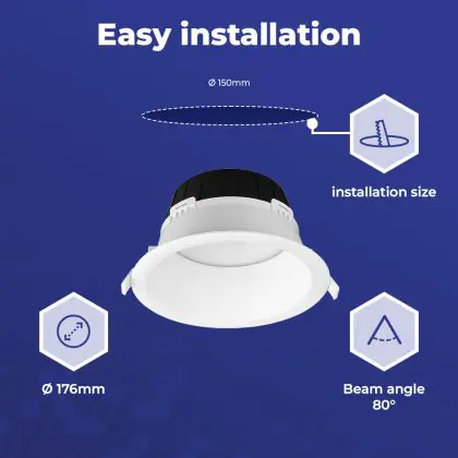 | Herstellername | Noxion LED Downlight Hera Deep Recessed White 15W 1500lm 80D - 827-830-840 CCT | 176mm - Cutout 150 | |