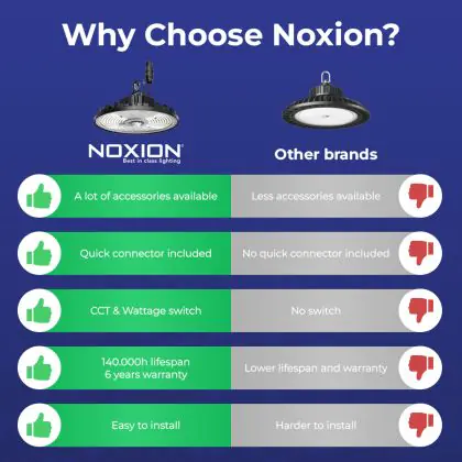 | Herstellername | Noxion LED Highbay Concord IP65 V4.0 100/120/150/200W 3CCT(4000/5200/6500K) 90° 0-10V with openhook | |