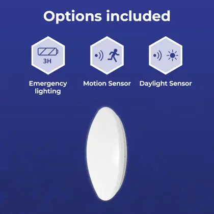 Noxion LED-Wand- und Deckenleuchte Corido V2 Weiß 12/16/20W 2000lm 830-840-865 CCT | IP44 - Bewegungs- und Lichtsensor - Not 3H