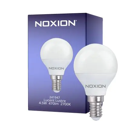 | Herstellername | Noxion Lucent Classic LED Lustre P45 E14 220-240V 4.5W 470LM CRI80 2700K NON-DIM (40W eqv.) | |