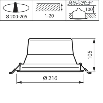 Der Ausschnitt einer Leuchte unterscheidet sich von den Abmessungen der Leuchte selbst und bezeichnet speziell die Grösse der Öffnung in der Decke, die für die sichere Montage der Lichtquelle benötigt wird.