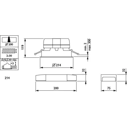 Der Ausschnitt einer Leuchte unterscheidet sich von den Abmessungen der Leuchte selbst und bezeichnet speziell die Grösse der Öffnung in der Decke, die für die sichere Montage der Lichtquelle benötigt wird.