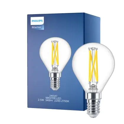 Philips MASTER LED E14 Kugel Fadenlampe Klar 2.5W 340lm - 922-927 Dim To Warm | Höchste Farbwiedergabe - Dimmbar - Ersatz Für 25W