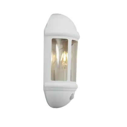 Ansell LED Applique Murale Latina Demi Lanterne Blanc - Convient pour E27 Jusuq'À 42W | IP65 - Détecteur de Mouvement et de Lumière