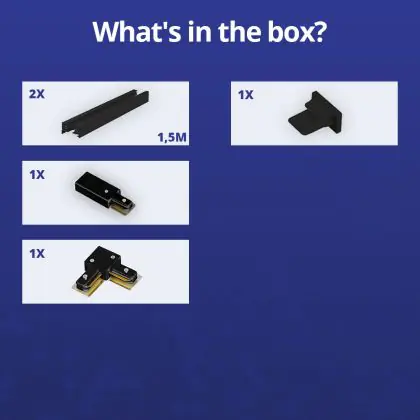 | Nom du fabricant | Complete L shaped 1-Phase Track Set Black – 1,5 x 1,5 meter incl. End Cap, Power Connector and L -C | |