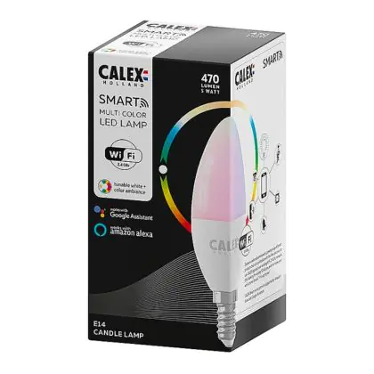 Description Calex Smart Tuya Wifi E14 Bougie 5W 470lm - 822-840 Variable Blanc | RGBW - Dimmable - Équivalent 40W