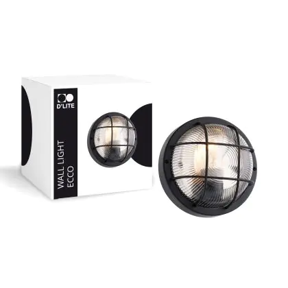 D'Lite Applique Murale Ecco Noir Rond | IP54 - Convient pour 1x E27