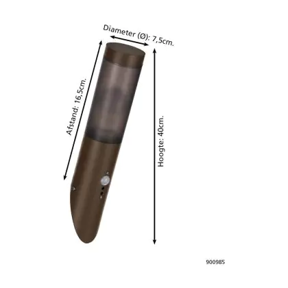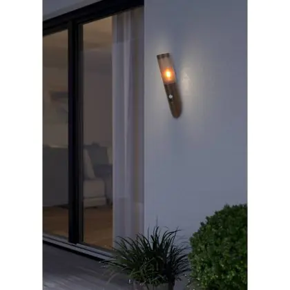 Eglo Applique Murale Helsinki Acier Inoxydable Brun | IP55 - Convient pour 1x E27 - Détecteur De Mouvement