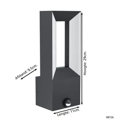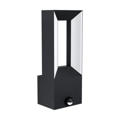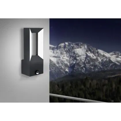 Description Eglo Applique Murale Riforano Aluminium Noir 5W 550lm - 830 Blanc Chaud | IP44 - Détecteur De Mouvement