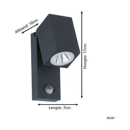 Description Eglo Applique Murale Sakeda Aluminium Anthracite 5W 600lm - 830 Blanc Chaud | IP44 - Détecteur de Mouvement et de Lumière