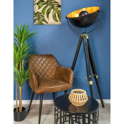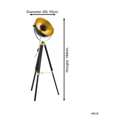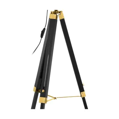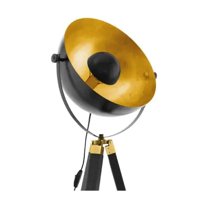 Eglo Lampadaires Salon Covaleda Bois Acier Noir Dorée | IP20 - Convient pour 1x E27