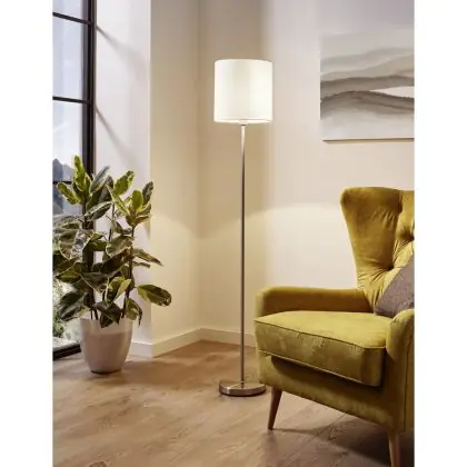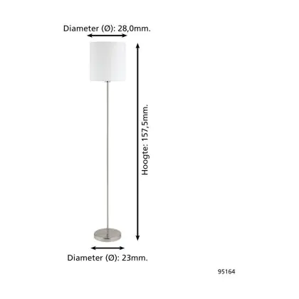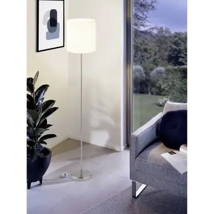 Eglo Lampadaires Salon Pasteri Acier Nickel Satiné Blanc | IP20 - Convient pour 1x E27