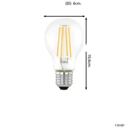 Description Eglo LED Poire E27 Filament Claire 7.3W 806lm - 830 Blanc Chaud | Équivalent 60W