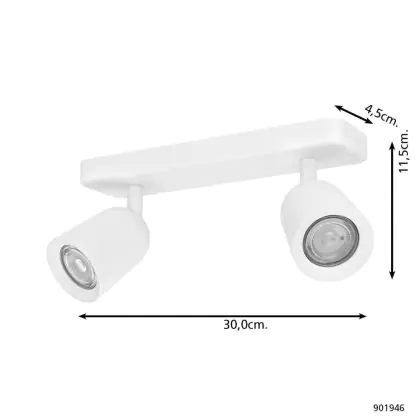 Eglo Plafond Spot Camaldoli Acier Blanc | Convient pour 2x GU10