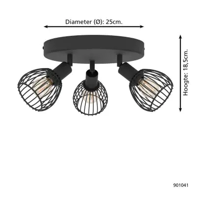 Eglo Plafonnier Sonni Acier Noir | IP20 - Convient pour 3x E14