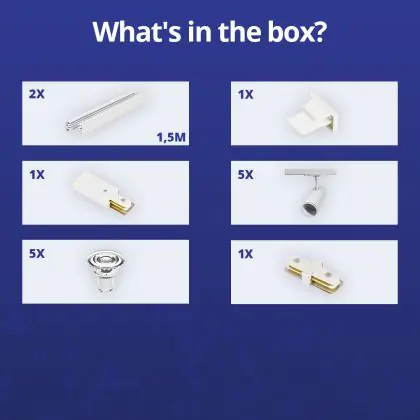 | Nom du fabricant | Complete Straight 3-meter 1-Phase Track Set White incl. 5x Spot fixture + GU10 2700K 3W Dim – 2x 1.5 | |