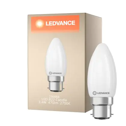 Description Ledvance Classic LED B22 Bougie Dépolie 3.4W 470lm - 827 Blanc Très Chaud | Dimmable - Équivalent 40W
