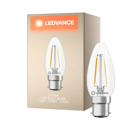 Ledvance Classic LED B22 Bougie Filament Claire 1.8W 250lm - 827 Blanc Très Chaud | Équivalent 25W