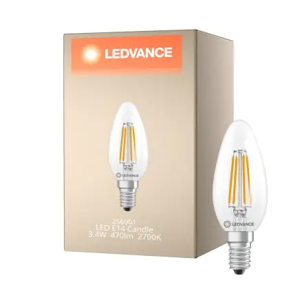 Description Ledvance Classic LED E14 Bougie Filament Claire 3.4W 470lm - 827 Blanc Très Chaud | Équivalent 40W