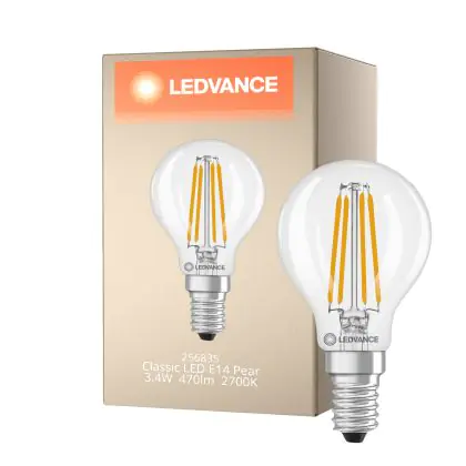 Ledvance Classic LED E14 Poire Filament Claire 3.4W 470lm - 827 Blanc Très Chaud | Équivalent 40W