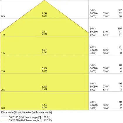 - Angle de diffusion: 120 °