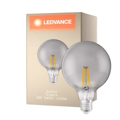 Description Ledvance Smart+ Wifi E27 Globe Classic Filament Fumée 6W 540lm - 825 Blanc Très Chaud | Dimmable - Équivalent 50W