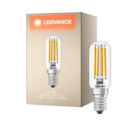 Ledvance Special LED E14 tube one-handed Filament Claire 4.2W 470lm - 827 Blanc Très Chaud | Équivalent 40W