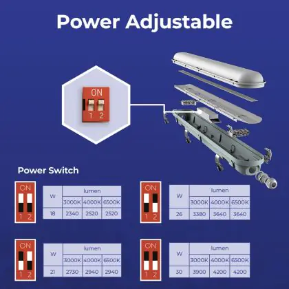 Description Lot 12x Noxion Réglette LED Étanche Poseidon V3.0 18-30W 2340-4200lm - 830-865 CCT | 120cm - Câblage Traversant (5x2.5mm2)