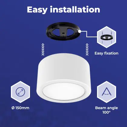 | Nom du fabricant | Noxion LED Downlight Hera Surface Mounted White 15W 1500lm 100D - 827-830-840 CCT | 150mm | |