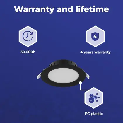La durée de vie est une indication du nombre d'heures pendant lesquelles un produit dure. Cela concerne uniquement les heures pendant lesquelles le produit est réellement allumé. L'éclairage LED a une durée de vie bien plus longue que l'éclairage conventionnel. L'éclairage LED dure donc beaucoup plus longtemps. La durée d'utilisation réelle d'un produit dépend de son utilisation (quotidienne). |