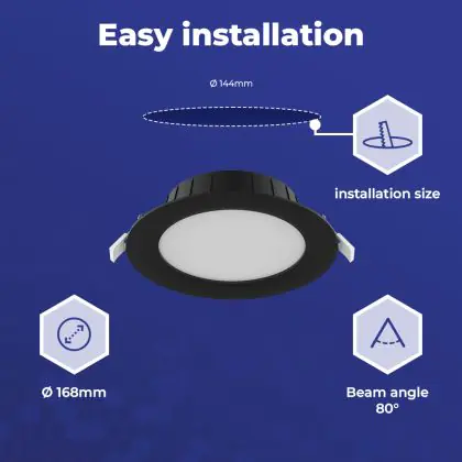 | Nom du fabricant | Noxion LED Downlight Hera Flat Recessed White 15W 1500lm 80D - 827-830-840 CCT | 168mm - Cutout 144m | |