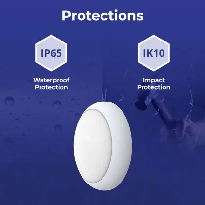 ![]() La valeur IK représente la résistance aux chocs et la protection contre le vandalisme. Elle est exprimée avec 2 chiffres (IK00 - IK10). Les produits portant la mention IK00 ne sont pas protégés contre la résistance, tandis que les produits portant la mention IK10 offrent une protection contre les impacts de 20 joules et sont également anti-vandalisme. |
