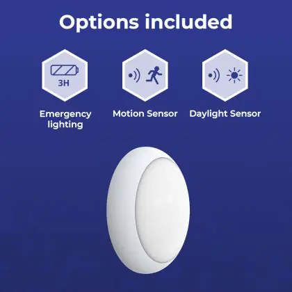 Description Noxion Hublot LED Pro V2 12/16/20W 2400lm - 830-840-865 CCT| 325mm - IP65 - Détecteur de Mouvement et de Lumière - Éclairage De Secours 3 Heures + Cercle Blanc