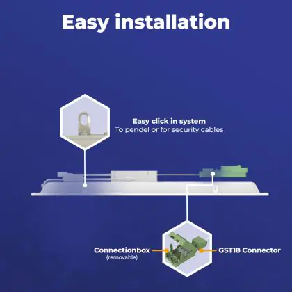 Les dimensions les plus courantes des panneaux LED sont 60x60cm (carrés) et 30x120cm (rectangulaires). Ce sont des tailles standard pour presque tous les plafonds/ des plafonds à grille. D'autres dimensions sont également disponibles, telles que 20x120cm ou 15x150cm.