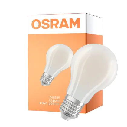Cette ampoule Osram Classic LED E27 Poire Filament Dépolie 3.8W 806lm - 827 Blanc Très Chaud | Dimmable - Équivalent 60W est l’alternative idéale pour la remplacement de votre ampoule classique de 60 W. La technologie LED intégrée vous offrira de nombreux avantages. Les ampoules à incandescence traditionnelles ont une durée de vie limitée. Cette alternative LED vous permettra de profiter d’un éclairage durable et fiable.