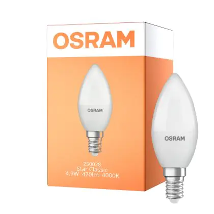 Cette ampoule Osram LED Star Classic E14 Bougie Dépolie 4.9W 470lm - 840 Blanc Froid | Équivalent 40W est l’alternative idéale pour la remplacement de votre ampoule classique de 40 W. La technologie LED intégrée vous offrira de nombreux avantages. Les ampoules à incandescence traditionnelles ont une durée de vie limitée. Cette alternative LED vous permettra de profiter d’un éclairage durable et fiable.