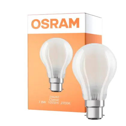 Cette ampoule Osram Retrofit Classic LED B22d Poire Dépolie 8.5W 806lm - 827 Blanc Très Chaud | Dimmable - Équivalent 60W avec son efficacité lumineuse de lumen par watt vous permettra de profiter d’un éclairage de qualité. Avec sa durée de vie de 15000 heures, vous n’aurez pas à vous soucier de son remplacement avant quelques années.