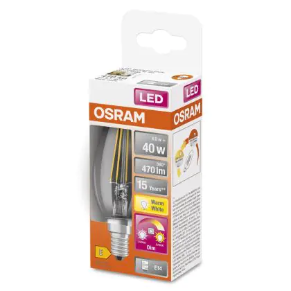 Description Osram Superstar Classic LED E14 Bougie Filament Claire 4W 470lm - 822-827 Dim To Warm | Dimmable - Équivalent 40W