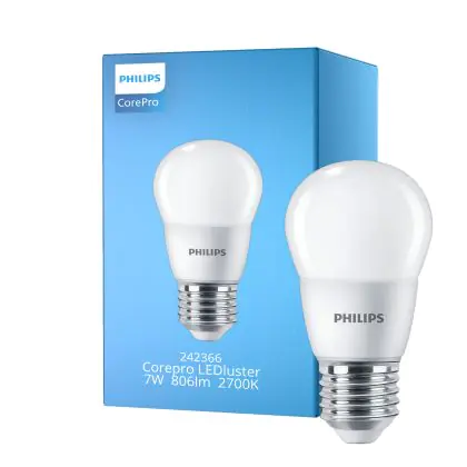 Cette ampoule Philips Corepro LED Lustre E27 Boule Dépolie 7W 806lm - 827 Blanc Très Chaud | Équivalent 60W avec son efficacité lumineuse de lumen par watt vous permettra de profiter d’un éclairage de qualité. Avec sa durée de vie de 15000 heures, vous n’aurez pas à vous soucier de son remplacement avant quelques années.