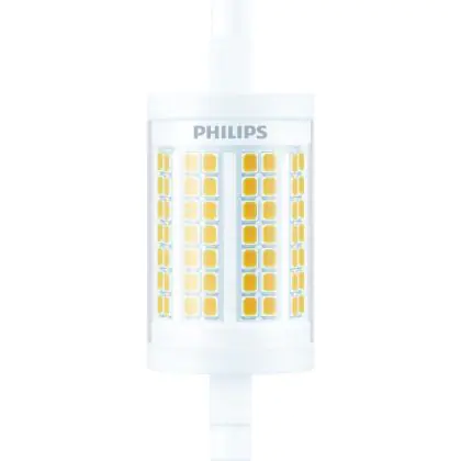 Philips LED Linear R7s CorePro 78mm 11.5W 1521lm - 830 Blanc Chaud |Équivalent 100W est une ampoule tubulaire linéaire à double extrémité. Ce type d’ampoule permet de délivrer une lumière homogène à 360° avec comme température de couleur 3000K - Blanc Chaud. Cette ampoule LED R7s de chez Philips est la solution idéale pour le remplacement de vos anciennes ampoules halogènes. Cette ampoule LED n’a pas besoin de transformateur, elle fonctionne avec 230V et peut se connecter directement sur le secteur électrique.